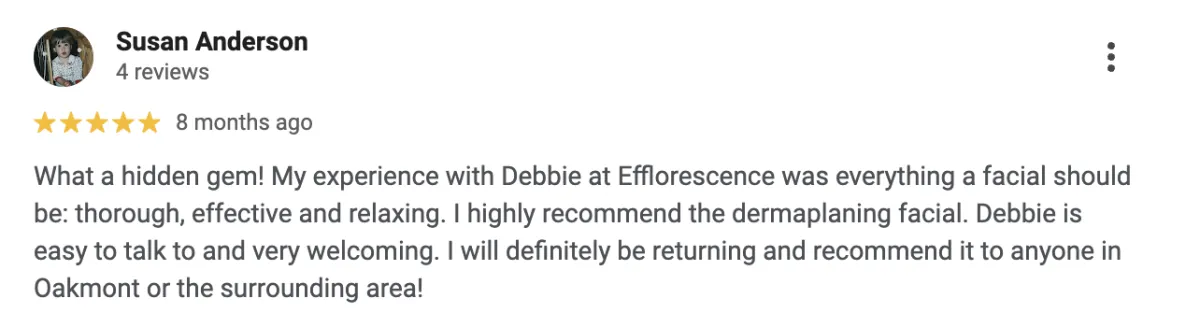 Efflorescence Spa in Oakmont would like to invite 7 select residents this week to receive a Free Mini Plasma Fusion Skin Resurfacing Treatment with purchase of a Facelift Microcurrent Facial with us.