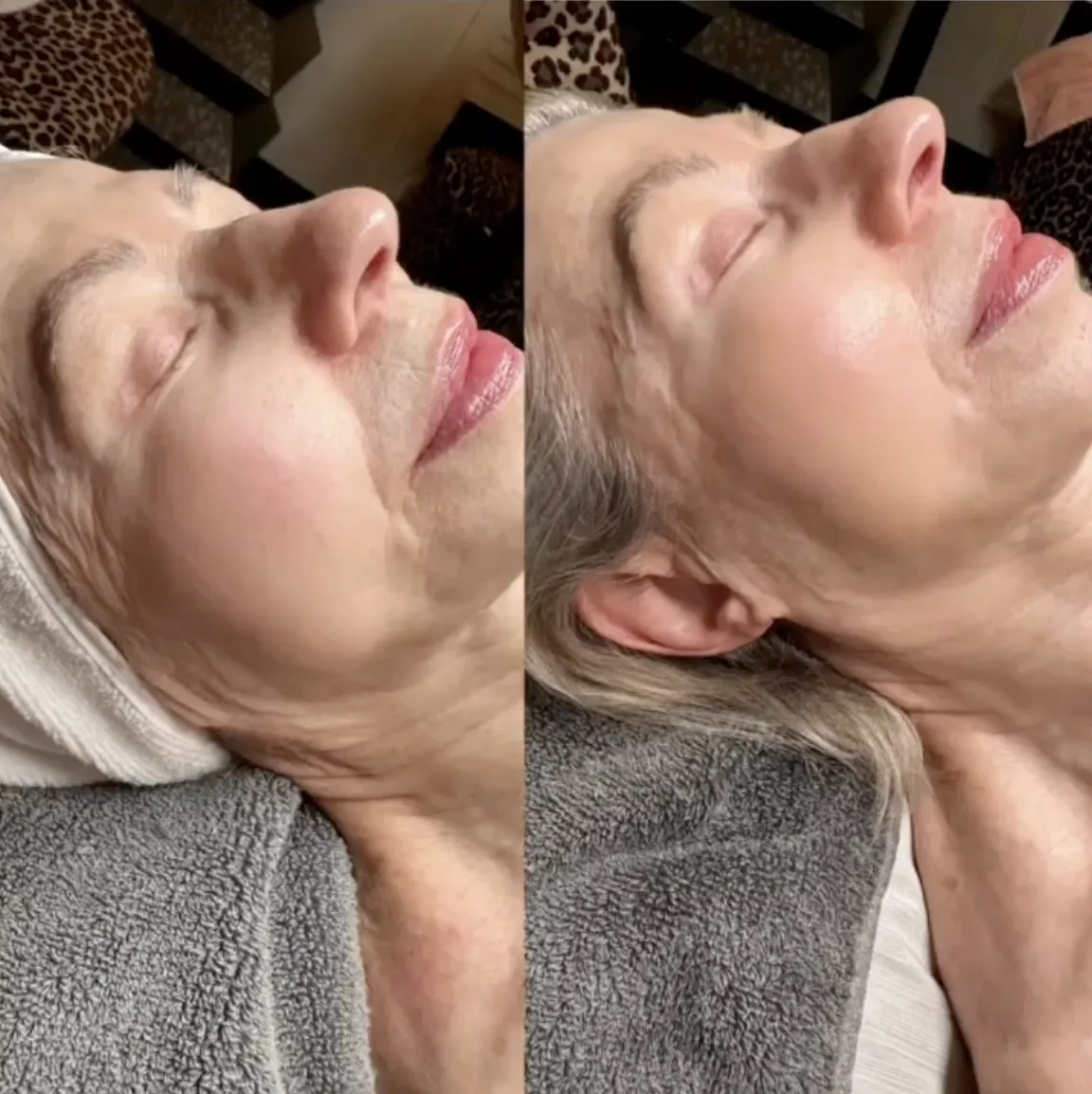 This is more than a glow facial. You are getting real muscle lift plus plasma resurfacing in a meaningful target zone. It is designed for change you can feel and see.